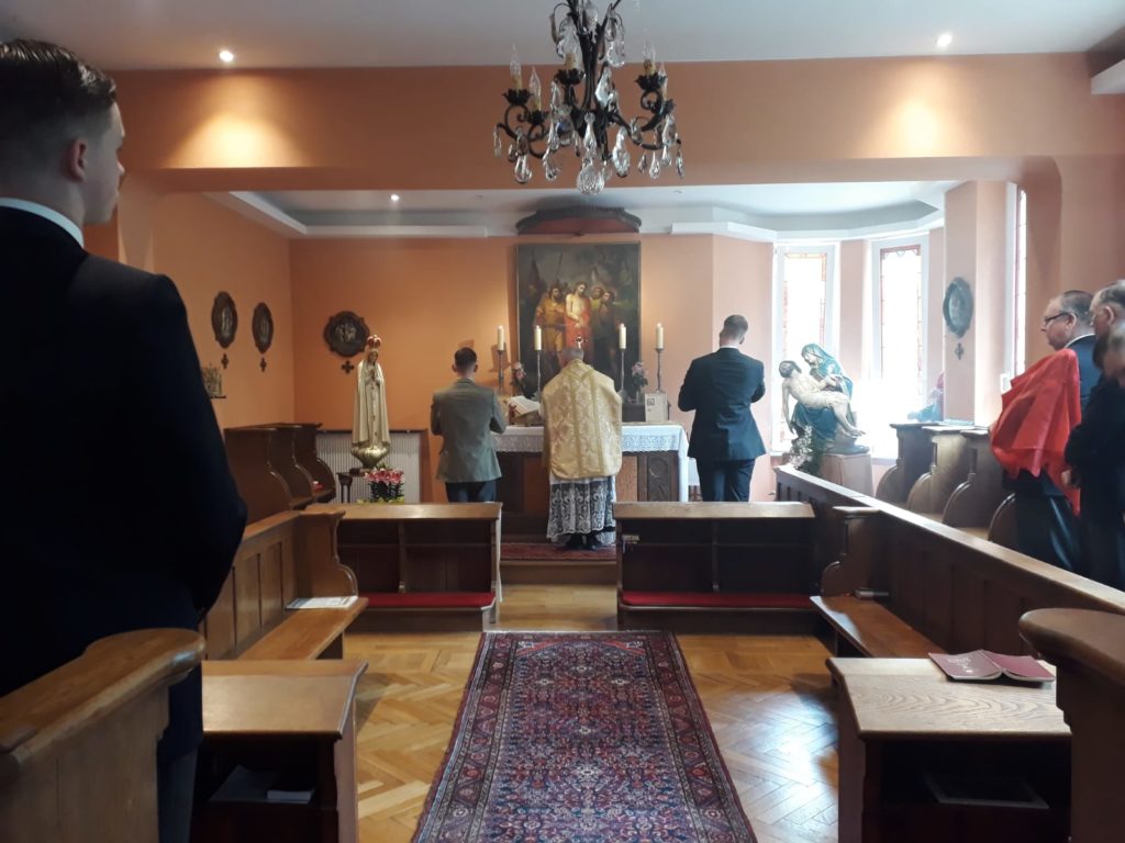 Le chanoine Manfred Joekel a célébré la sainte messe dans l’oratoire de la Villa Notre-Dame de la Clairière.