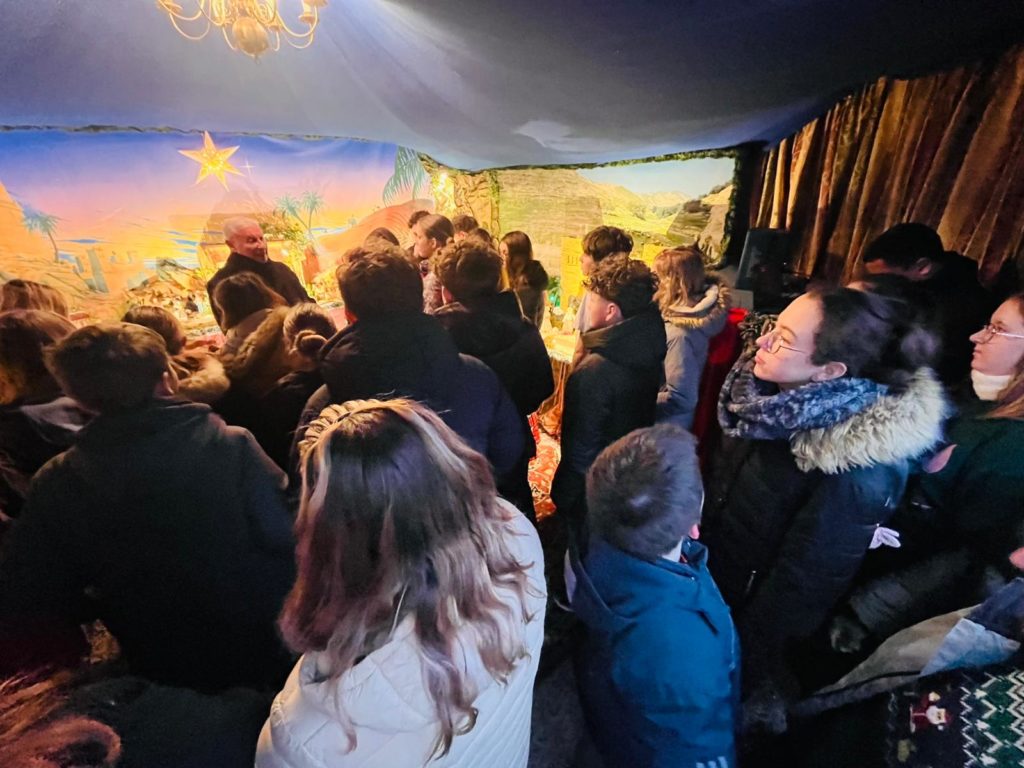 Au cours de la visite, l’abbé François Thomen a présenté et expliqué la crèche aux jeunes en s’appuyant sur le récit des Évangiles, permettant ainsi un temps de catéchèse vivant et adapté.