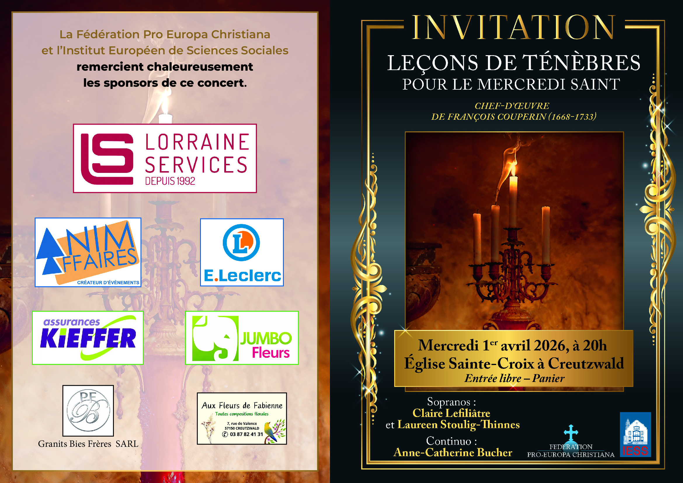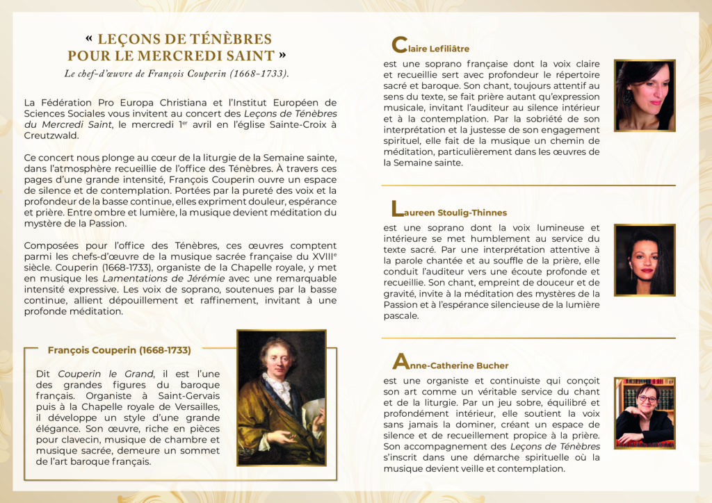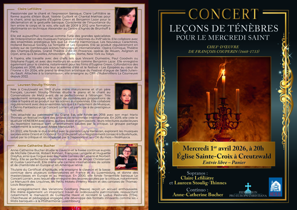 Accueil Activités Concert « Leçons de Ténèbres Pour le Mercredi Saint » – Église Sainte-Croix, Creutzwald